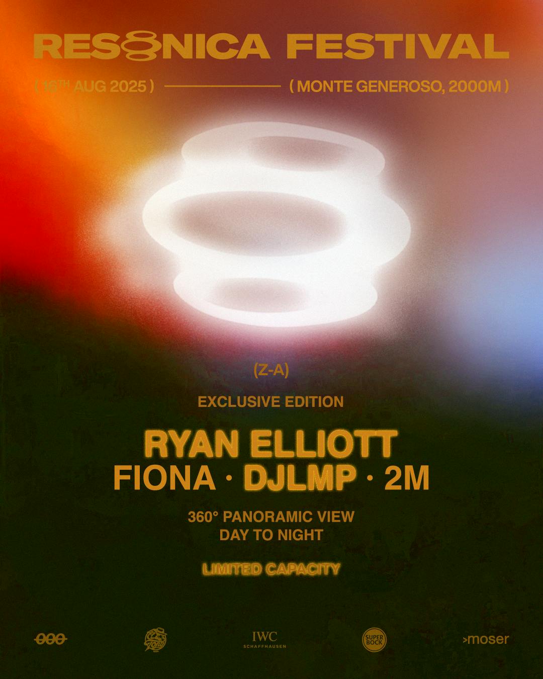 RESONICA FESTIVAL 16.08 – Monte Generoso, Ticino Join us from 5:15 PM to 1:00 AM for an exclusive edition like no other – set at 2000m, with a 360° panoramic view that spans from day to night. A magical celebration in the Swiss alps. Limited capacity – don’t m... [MORE]